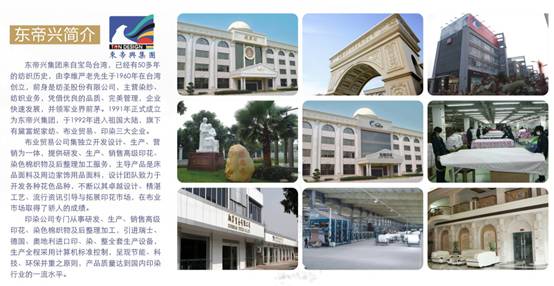 1960年,在宝岛台湾,李维严老先生创立了主营染纱、纺织业务的东帝兴集团前身台湾明志企业社。凭借优秀的企业管理制度、过硬的产品质量,这个小小的企业社迅速发展,成为纺织行业内的精英,并进军家纺行业。但问题很快接踵而来,到1995年左右,台湾的家纺市场已趋饱和,家纺制造成为夕阳产业。一筹莫展的情形之下,大陆市场的巨大潜力给了企业新的运营方向,黛富妮家饰用品有限公司应运而生,成为东帝兴集团进军大陆市场的第一步。