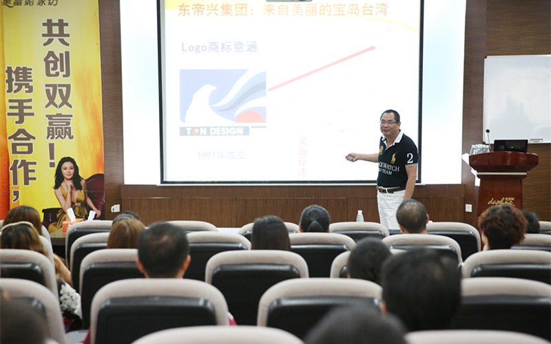 “帅哥老大”——黛富妮总经理林明秋先生主讲《“新贵”财富投资说明会》,介绍东帝兴集团雄厚实力,全产业链的品质保障,并就当下市场经济指点迷津,勾画蓝图,破解家纺行业谜团,指出营销出路,让在座的嘉宾醍醐灌顶!
